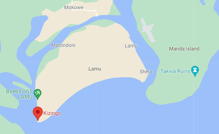 Kizingo means corner in Kiswahili and that is where you can find us. Situated on the remote southwest tip of Lamu island near Kipungani village, we are a 30-minute boat ride from Manda airport. With no cars on the island, when we want to visit Shela or Lamu town we travel by boat or boda-boda (our local motorcycle taxi). Or, when we feel like stretching our legs, we walk the 13km dune-lined beach often without ever seeing another human soul.